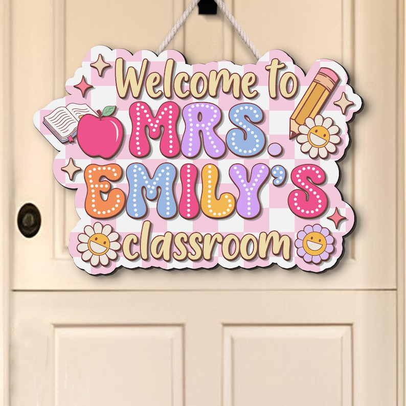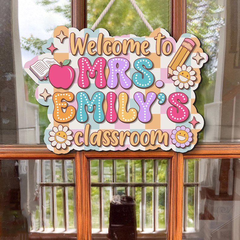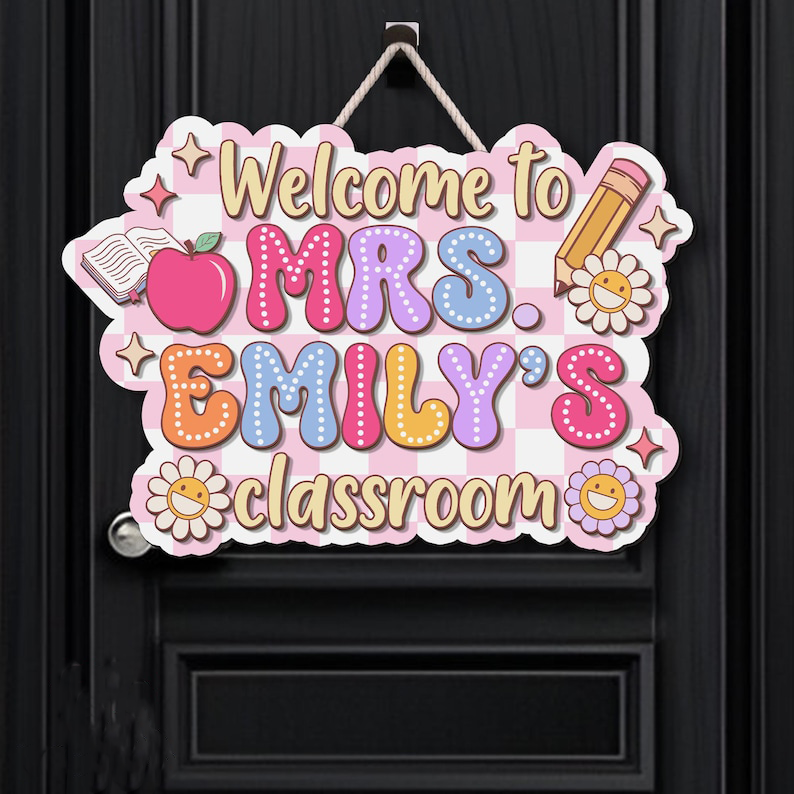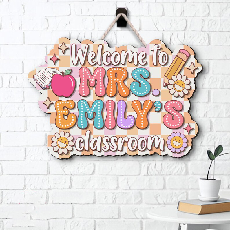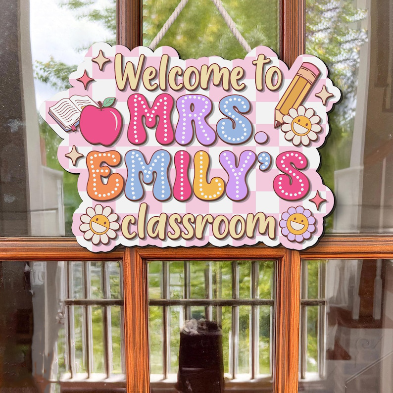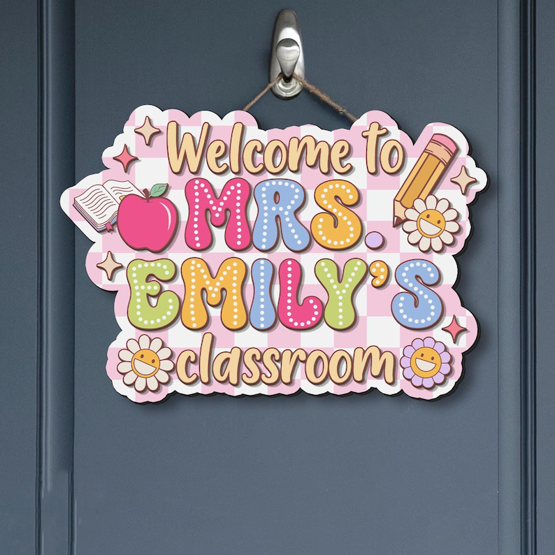 Every teacher needs and loves a personalized sign outside their door. Wouldn't you just love to see such a fun, happy, and inspiring sign next to your child's classroom? This hanging pencil sign is a fantastic gift for your child's elementary teacher. Of course, you can always hang it in your home-schooling room as well or hang on the classroom door or wall!